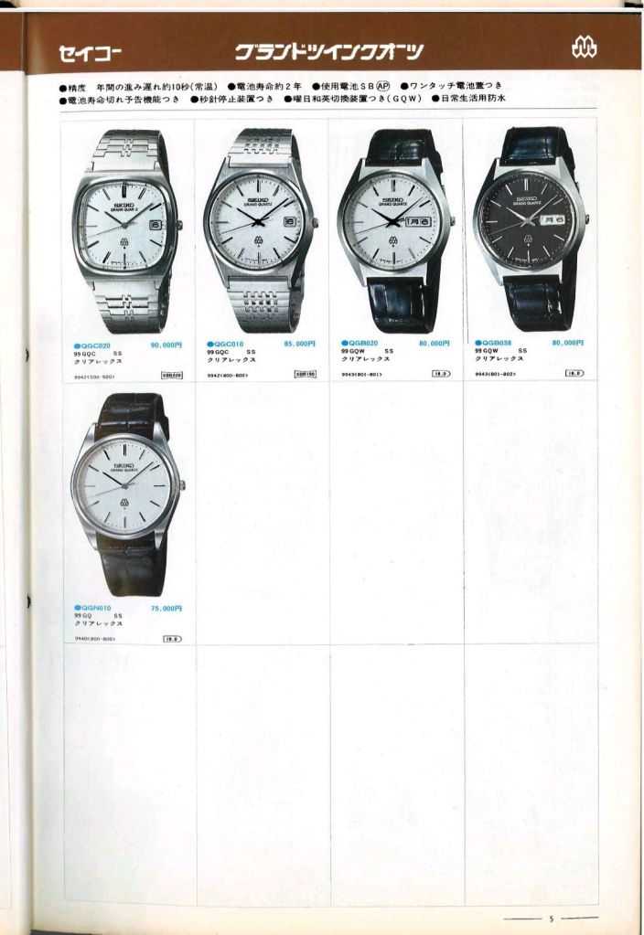 Die Grand Quartz waren im Premiumsegment angesiedelt. Direkt unterhalb der noch präzisieren „Quartz Superior“ positioniert, kosteten sie damals oftmals mehr als die zeitgenössischen mechanischen Grand Seiko Uhren.