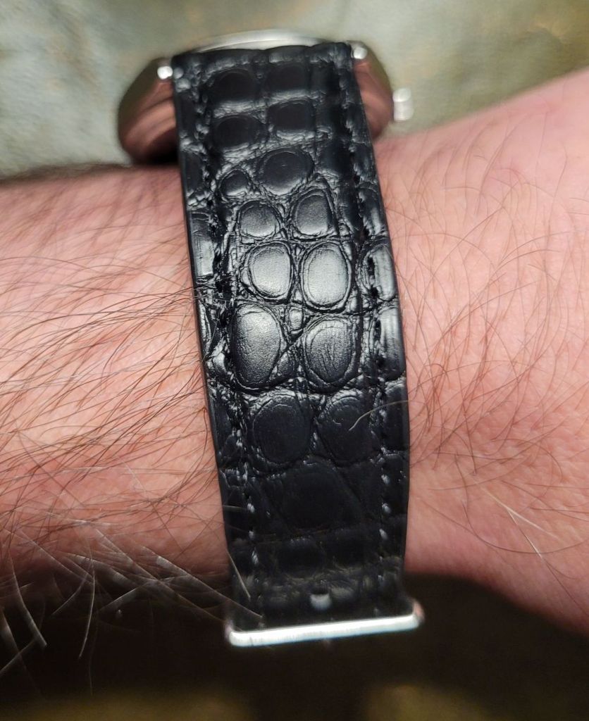 - Band: Aftermarket Krokodillederband von „Fluco“, 19x16mm tapered
