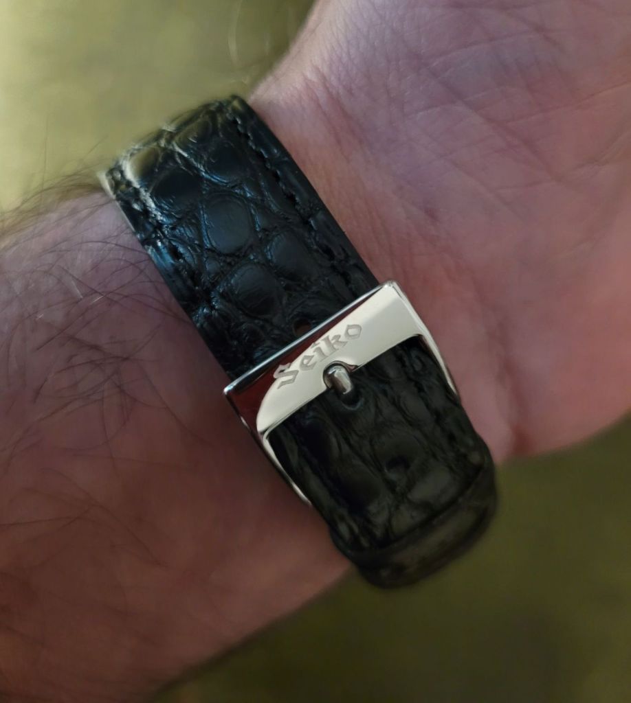 Ich habe die Uhr 2025 in einem nahezu neuwertigen Zustand, frisch revidiert und kalibriert, für rund 400 € erworben. Bis auf das von mir montierte Krokodillederband von „Fluco“ und die Dornschließe ist sie vollständig original erhalten.